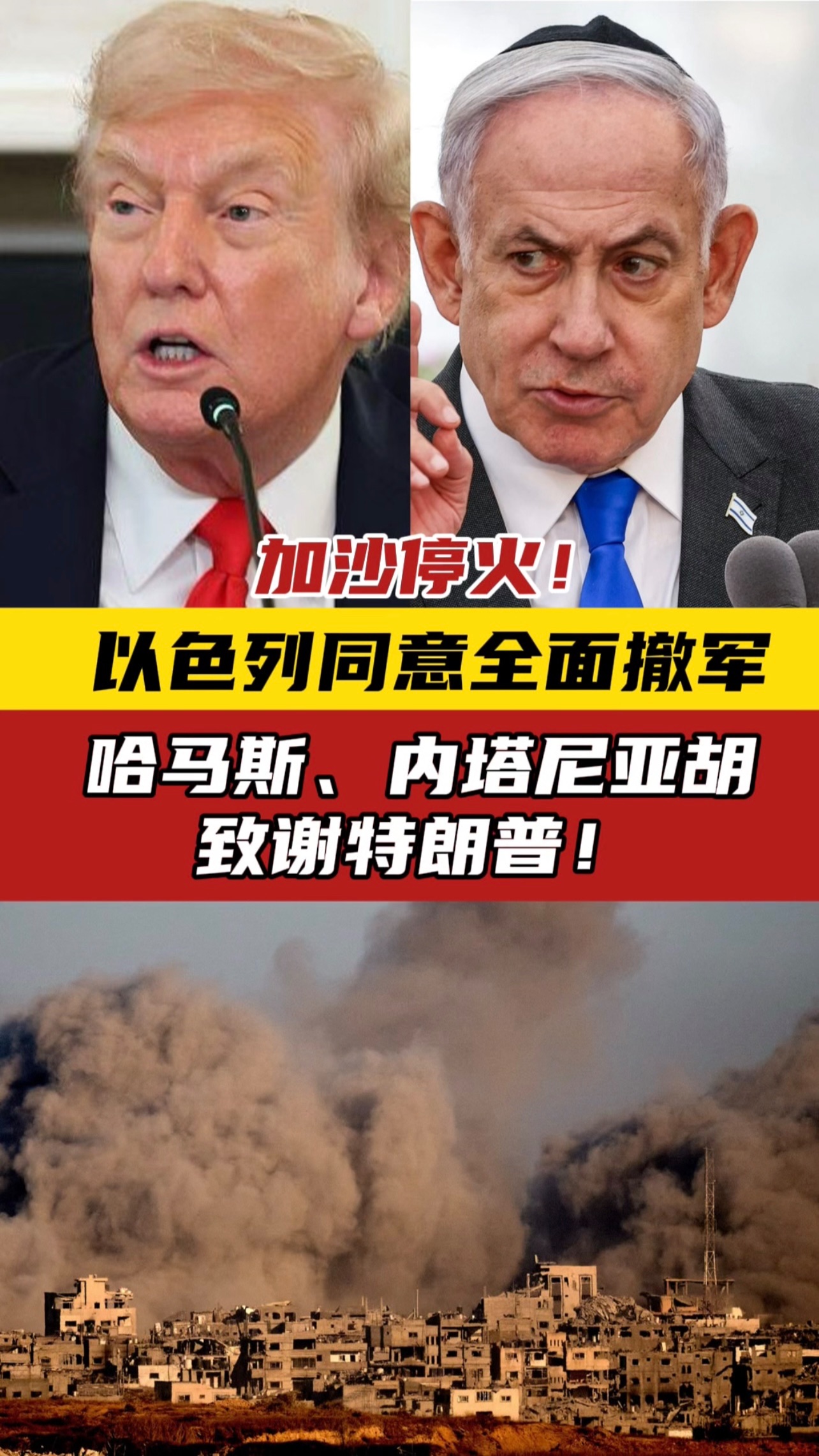 加沙停火!以色列同意全面撤军 哈马斯、内塔尼亚胡致谢特朗普!